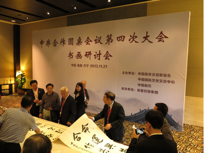 11月21日上午10点,中国前外交官联谊会与文化中心共同主办了书画研讨会。中外来宾以文会友,泼墨挥毫,现场气氛热烈。与会代表称中非合作融入了文化元素,让非洲来宾充分感受到中华文化的魅力。